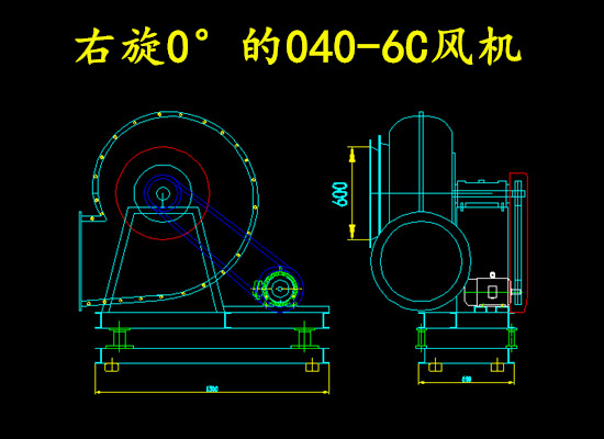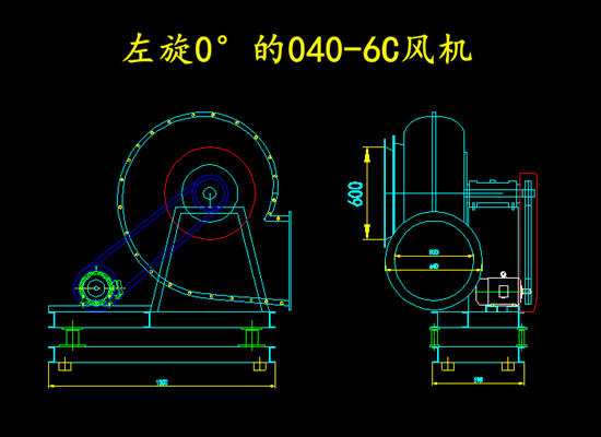 風機方向:0°(左旋0°下圖,右旋0°上圖);