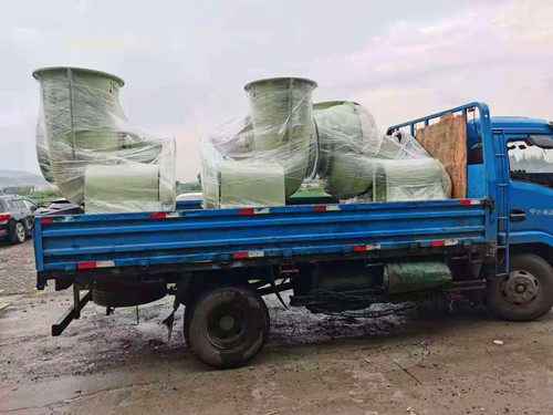 b、首先啟動玻璃鋼防腐風機,在風機的作用下可以將生產過程中產生的廢氣經管道吸入風機內部,然后在風機葉輪的旋轉作用下將廢氣送至指定的廢氣處理塔內。