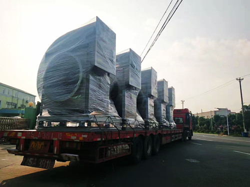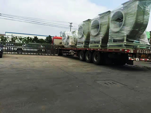 風機的整體尺寸會隨著型號的變大而增加,但是從運輸與安裝的角度考慮,一般最大型號的玻璃鋼離心風機高度極限為3米左右。這種型號的風機對應為14C,長度在2.5-3.5米左右,高度在3米左右。如果需要處理的風量比較大,可使用多臺風機搭配使用。下面是多臺大型號的玻璃鋼離心風機發(fā)貨圖。