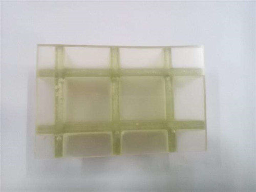 制作透明顏色的格柵板,樹脂必須選擇質(zhì)量較好,純度高的樹脂種類;如常規(guī)的間苯樹脂就無法滿足使用要求,色澤渾濁,一般使用間苯樹脂或乙烯基專用樹脂。其中乙烯基樹脂也是本公司生產(chǎn)的玻璃鋼離心式風(fēng)機(jī)的葉輪使用的主要原材料。
